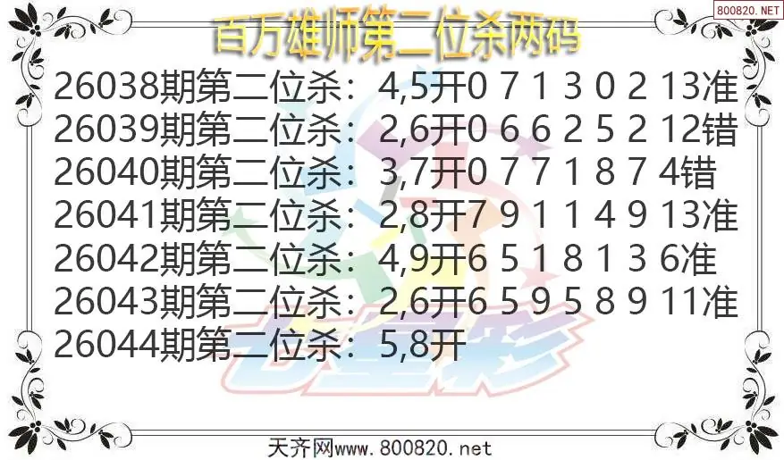 百万雄师26年044期七星彩杀号图谜