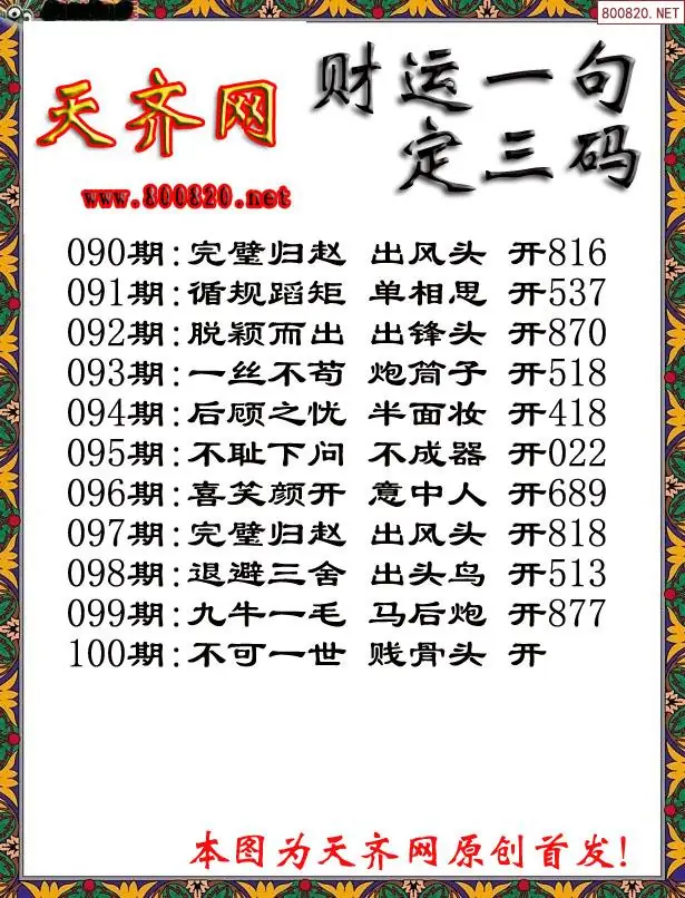 100期财运3D一句定三码字图谜