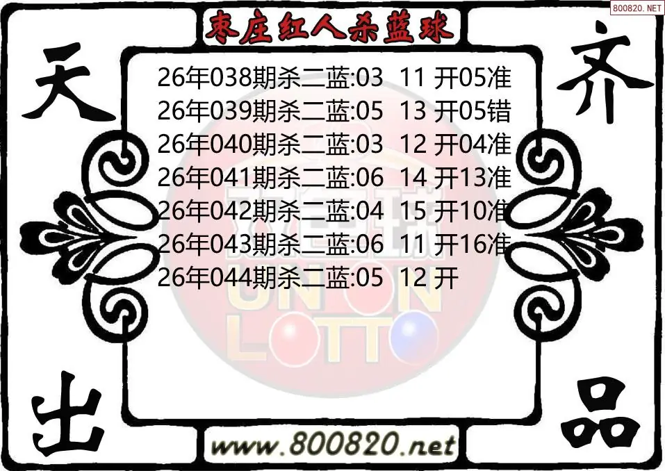 枣庄红人26年044期杀双色球蓝球图迷