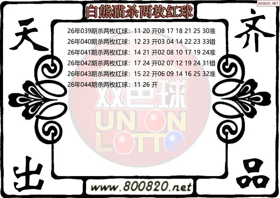 白熊猫26年044期双色球杀两枚红球图谜