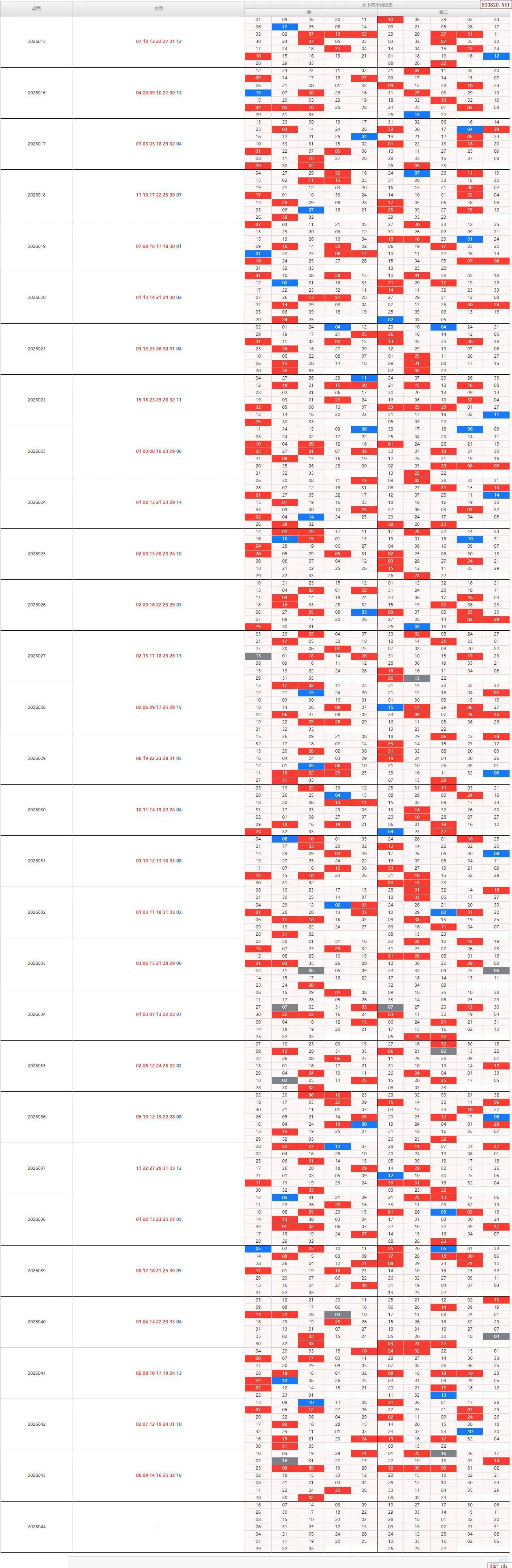双色球26044期天下帮不同出号图表