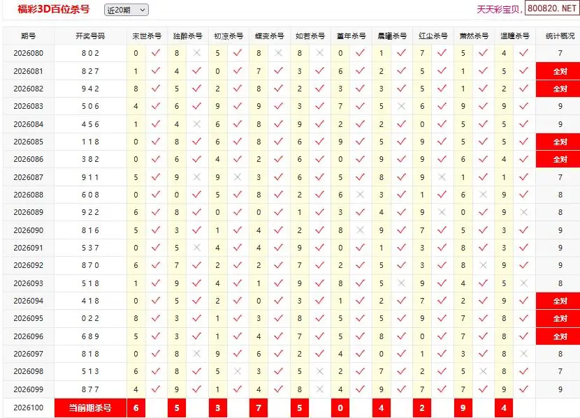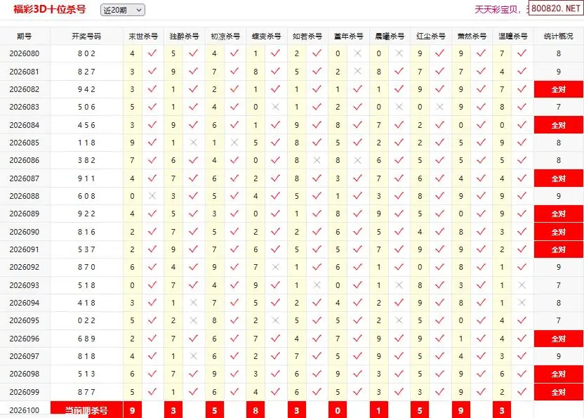 26100期彩宝贝福彩3D百十个位杀号
