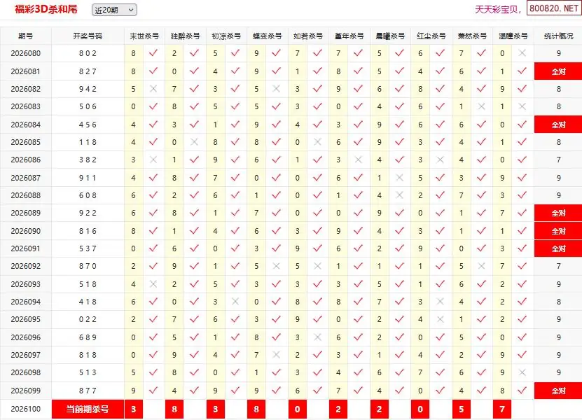 26100期彩宝贝福彩3D杀和尾