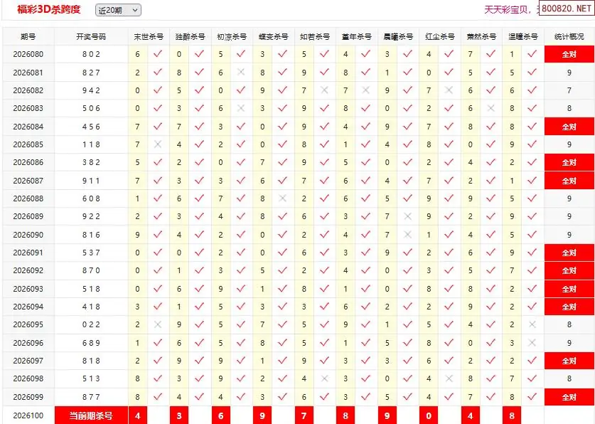 26100期彩宝贝福彩3D杀跨度