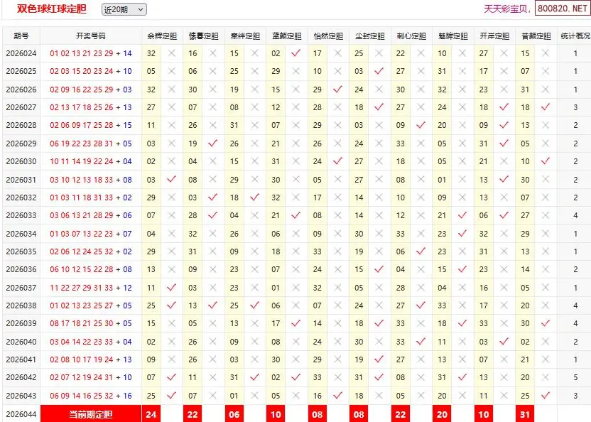 20 福彩双色球26044期[大石头]预测蓝