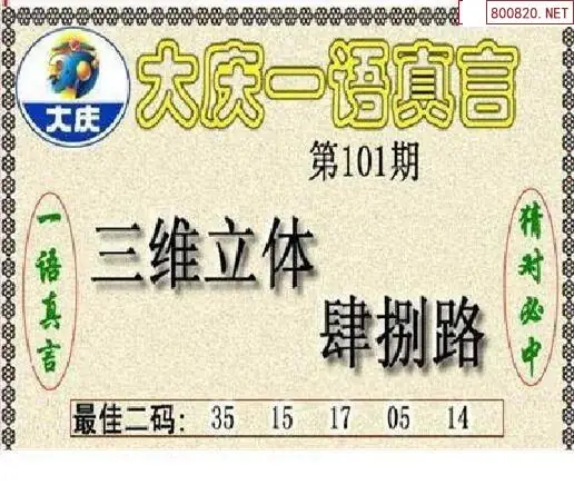 大庆图26101期大庆五码+一语真言黑胆3d图谜