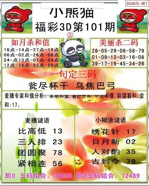 小熊猫26101期美安和值+一句定三码3d图谜