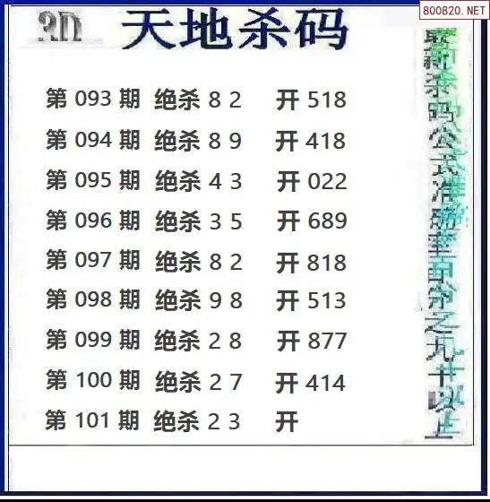 福彩3D101期天地绝杀图谜