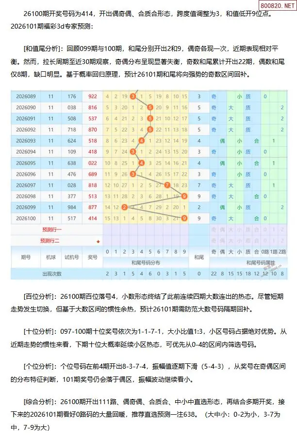 福彩3D第2026101期[玩彩高手]最准最新3d号码预测