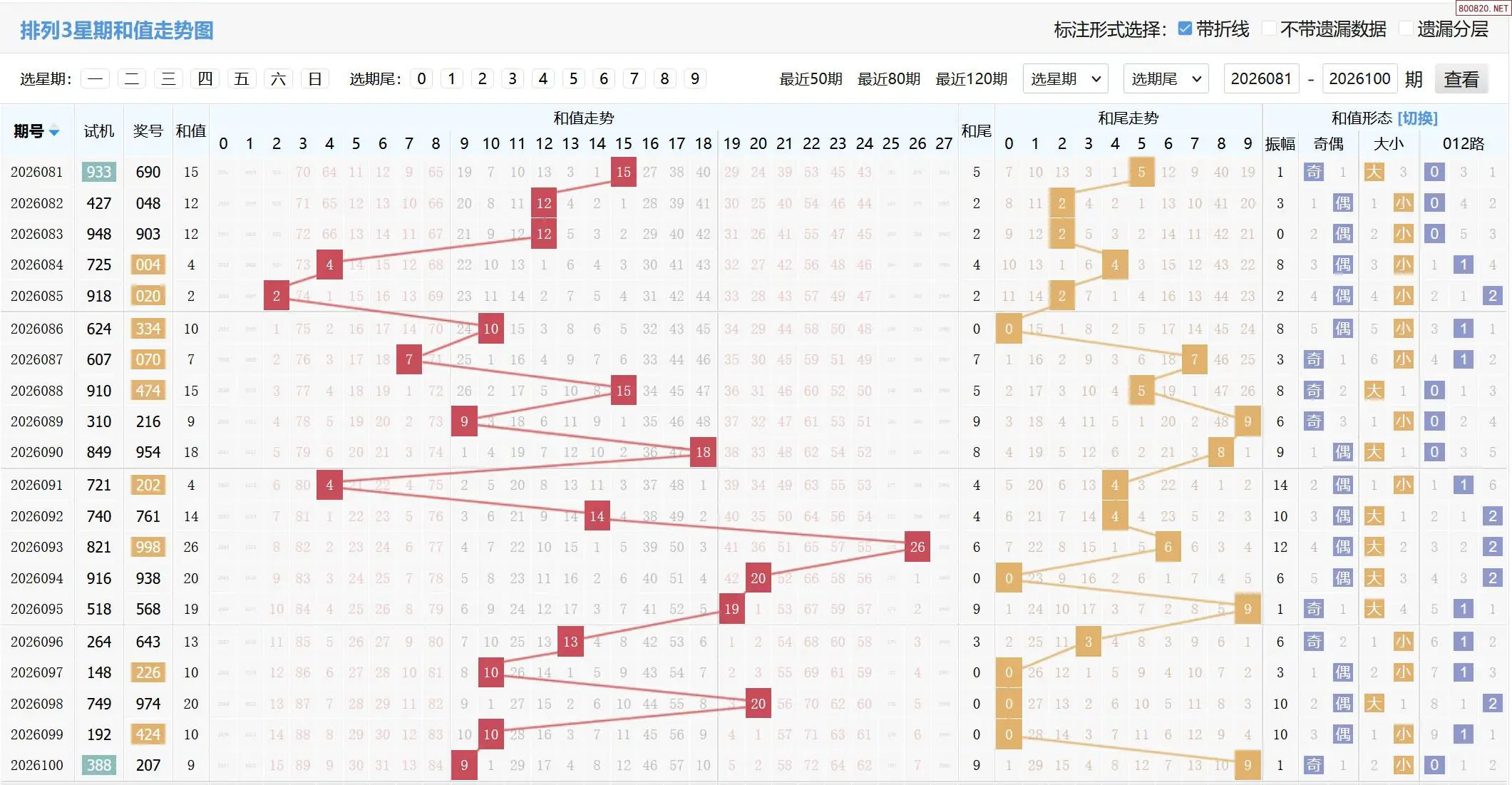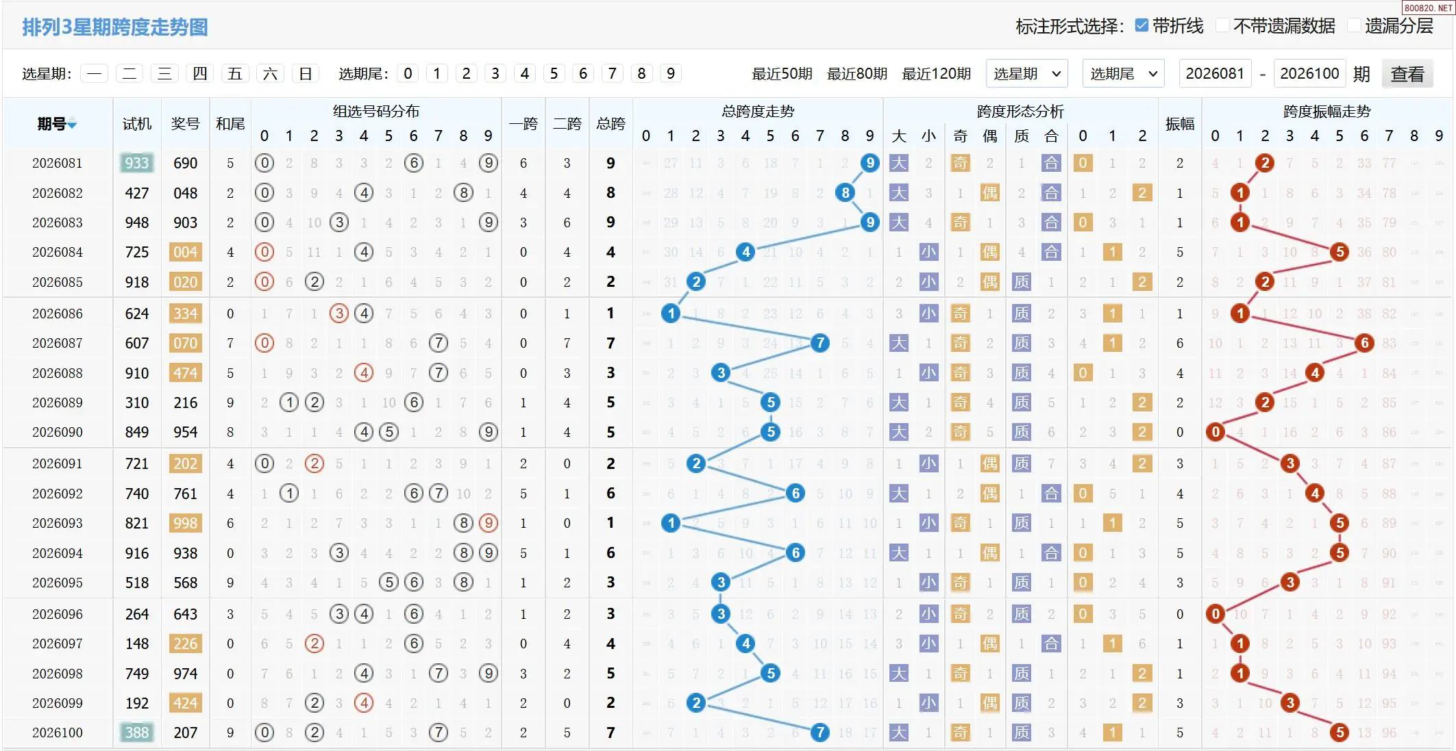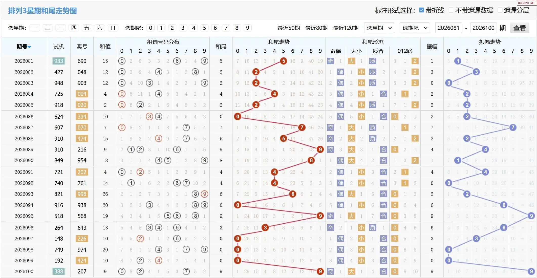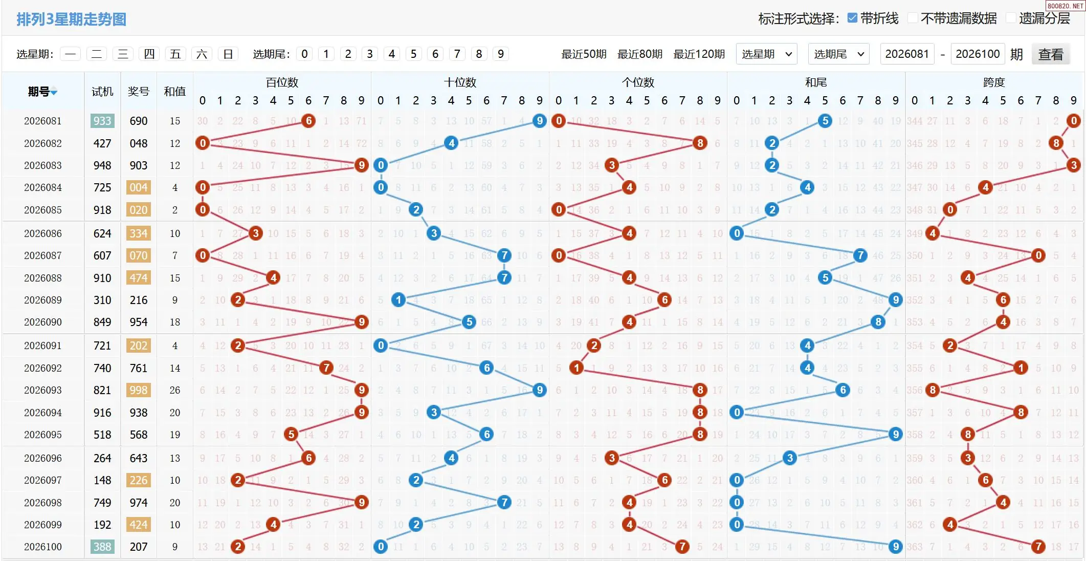 2026101期体彩P3基本走势图如下: