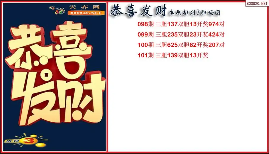 恭喜发财2026101期本期排列3胆码图(原创)