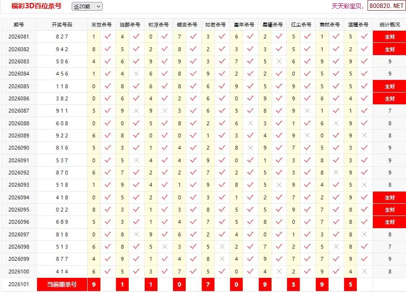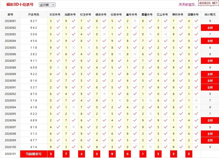 26101期彩宝贝福彩3D百十个位杀号