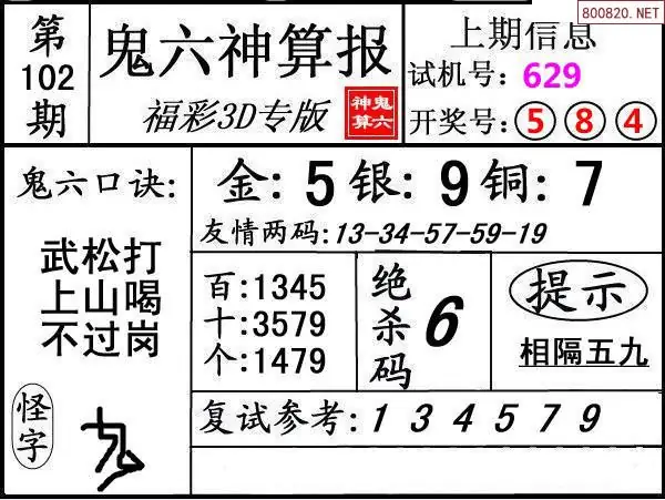 鬼六图26102期鬼六神算报+鬼六胆码图迷