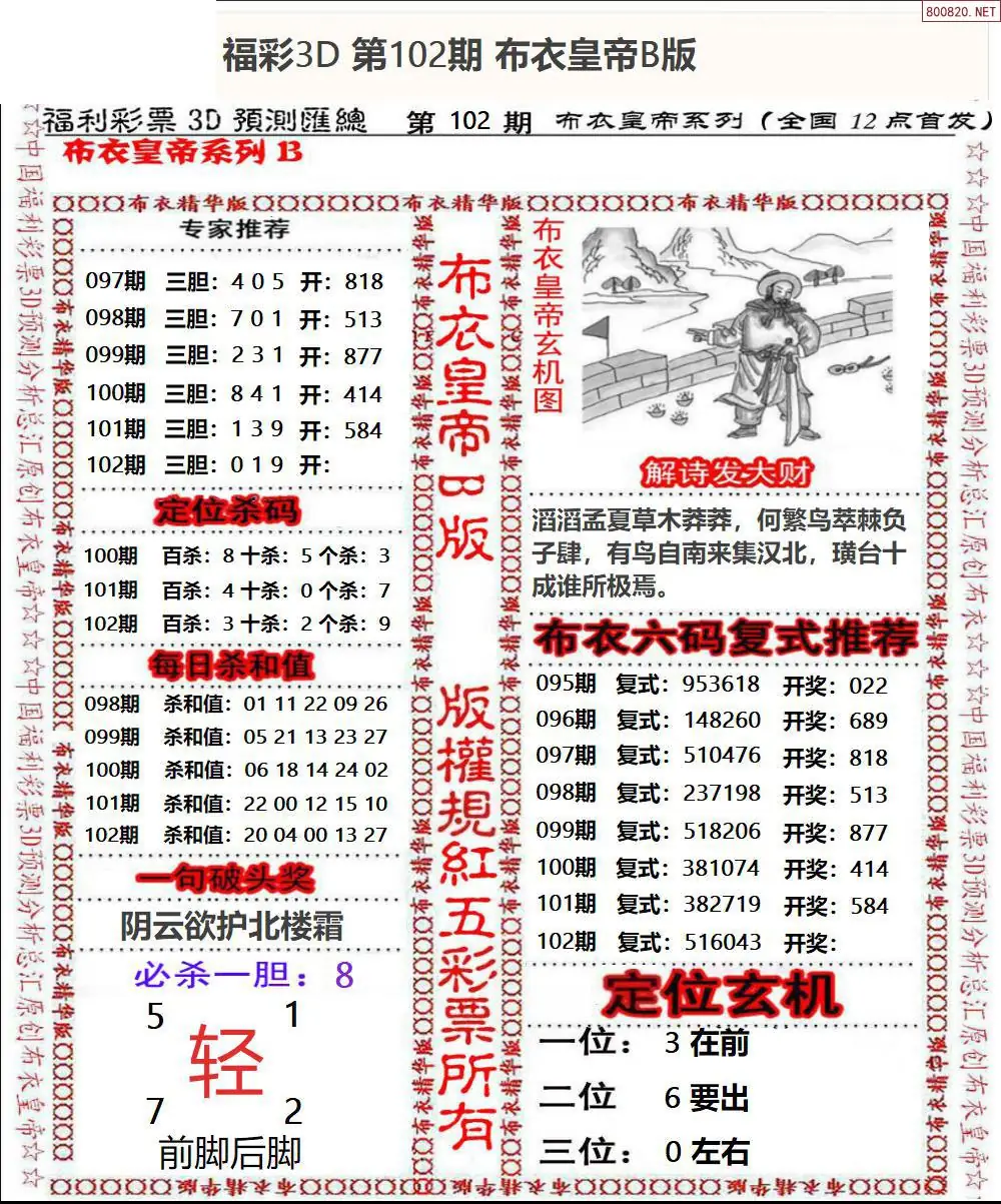 皇帝图26102期布衣皇帝+老夫子布衣3d图谜