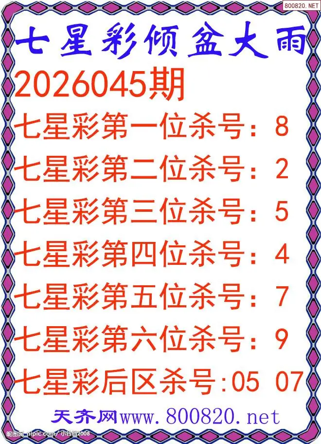 倾盆大雨26年045期七星彩杀号图谜