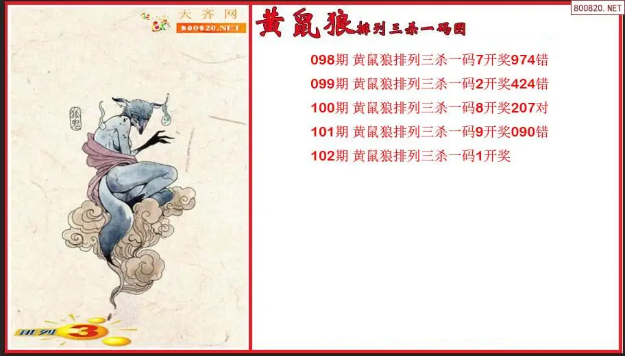 排列3第2026102期黄鼠狼杀一码图(原创)