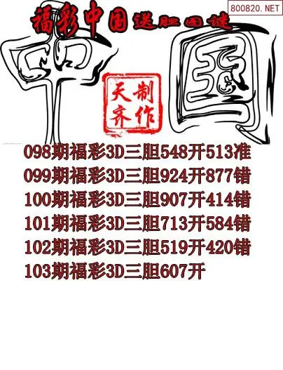 2026103期福彩中国福彩3d胆码图谜