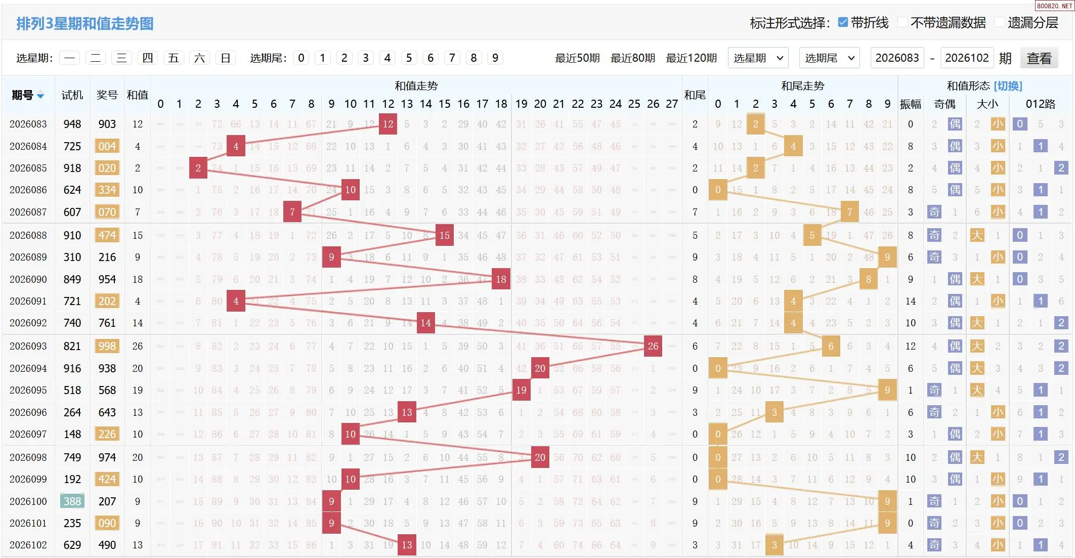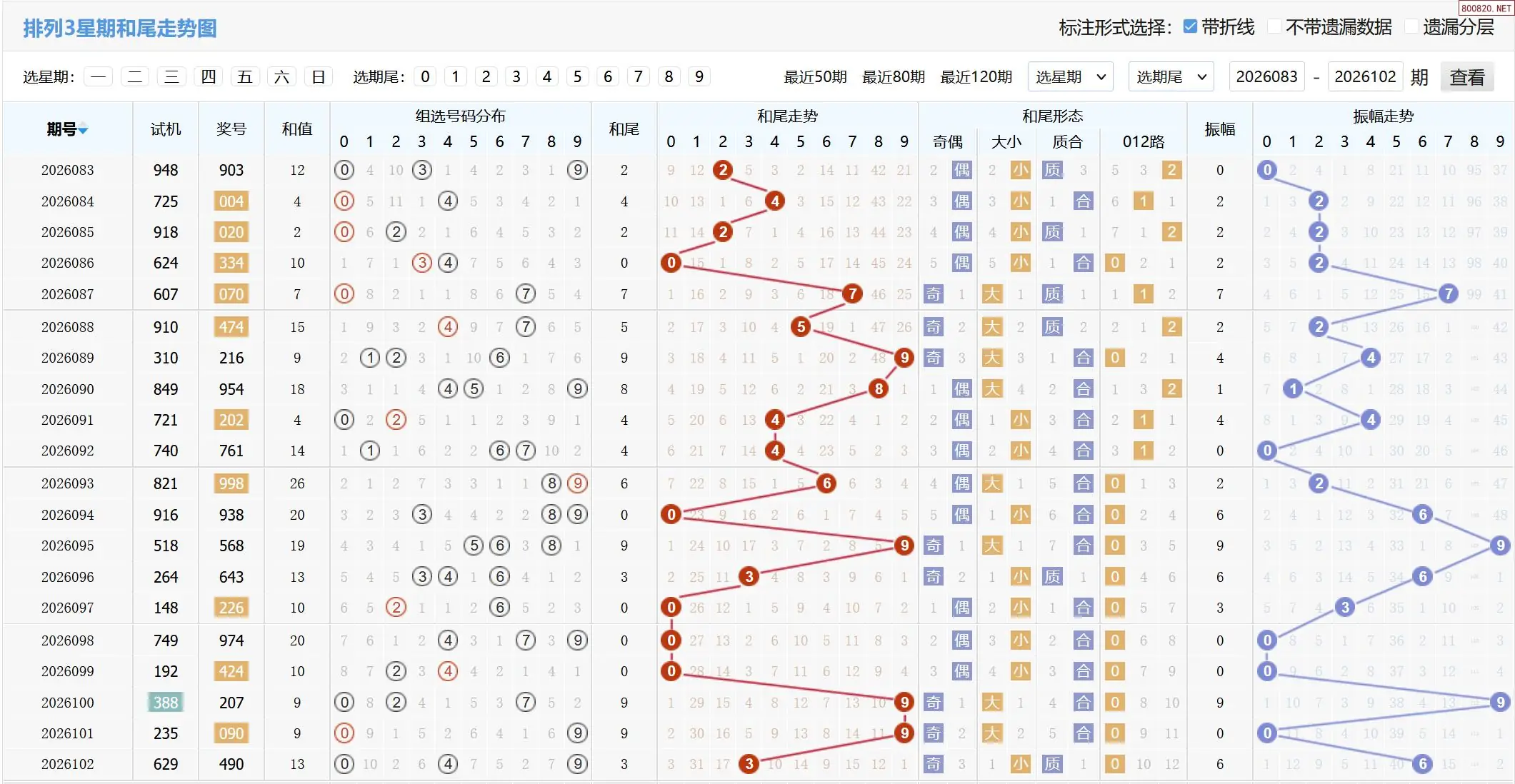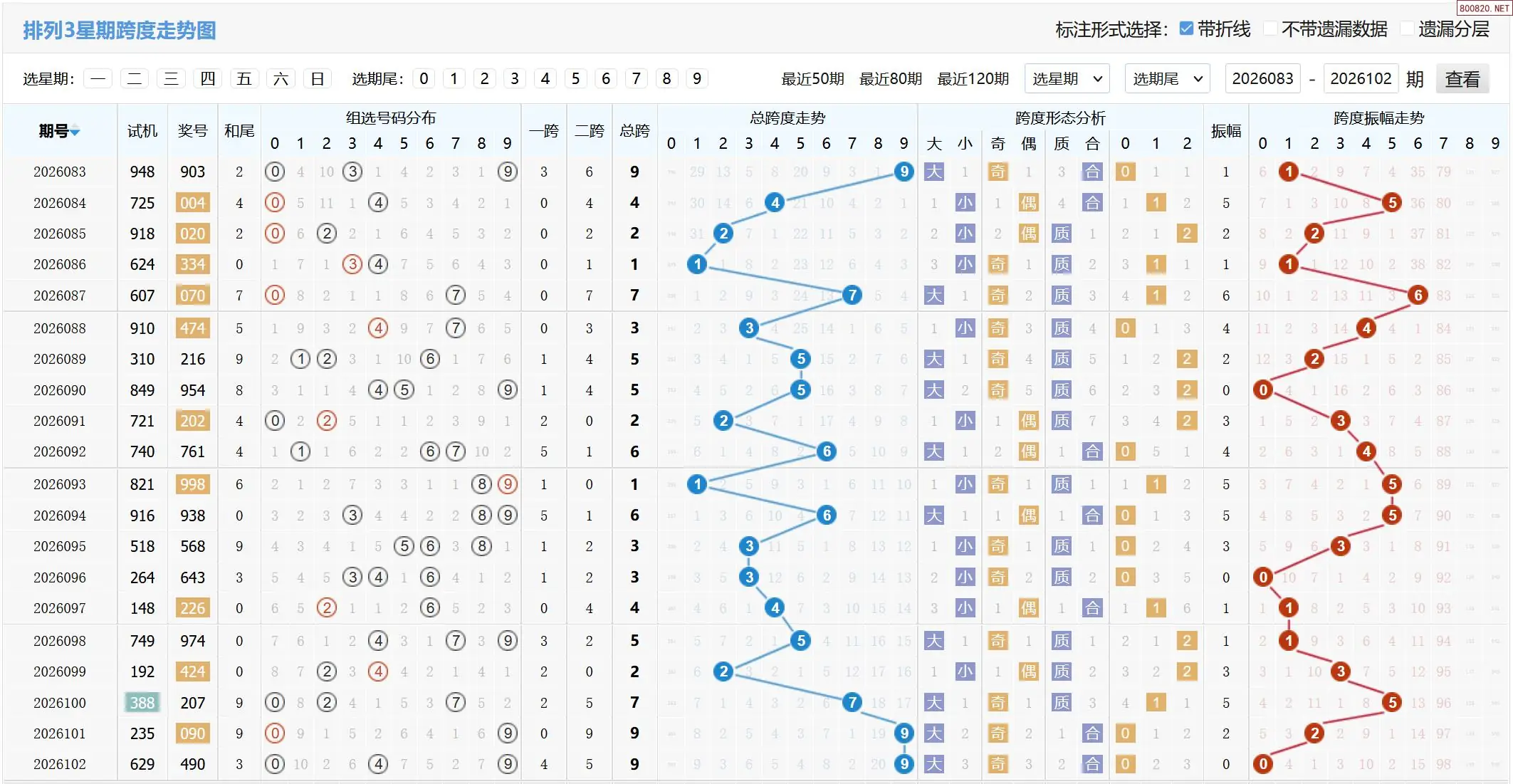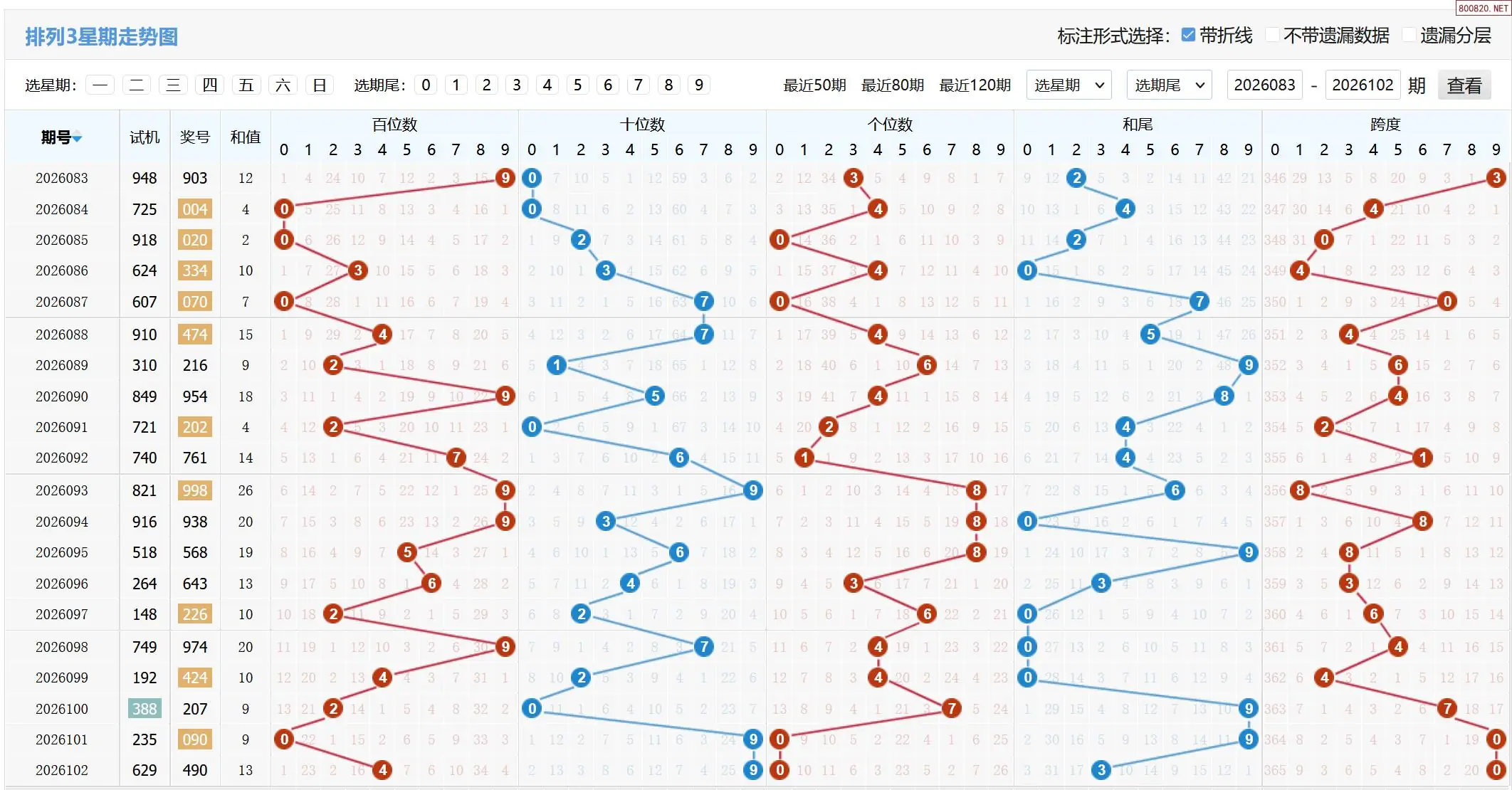 2026103期体彩P3基本走势图如下: