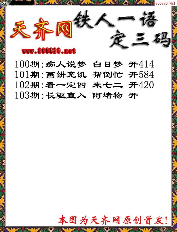 103期3D铁人一句定三码字图谜