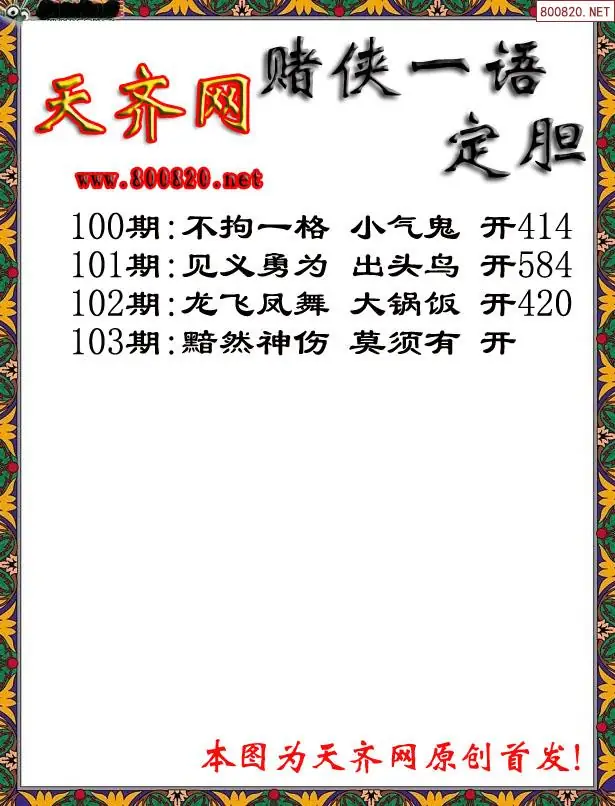 103期[彩3D赌侠一句定三码字图谜