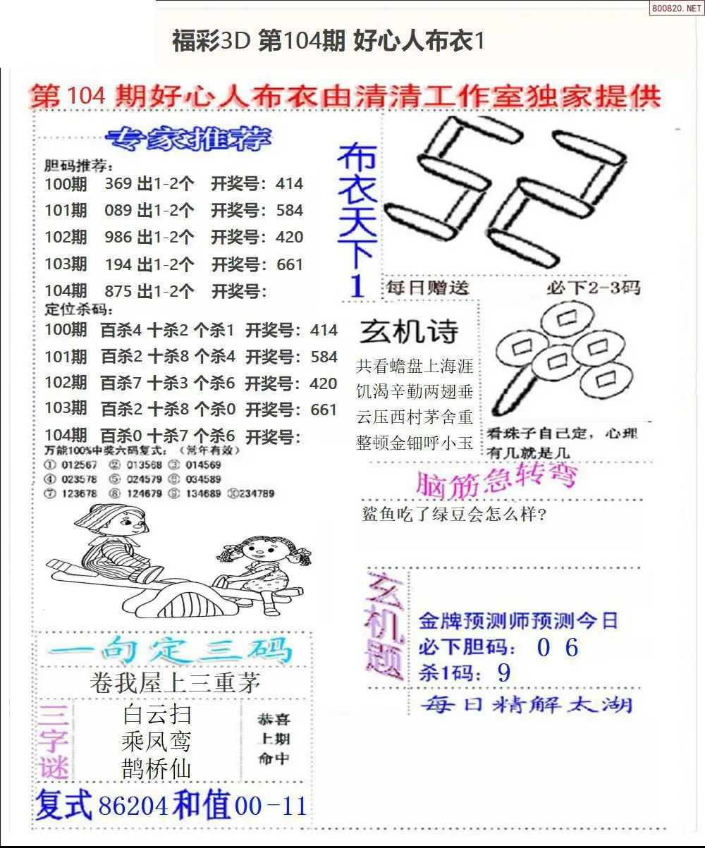 布衣图104期布衣定位杀+布衣神算图迷