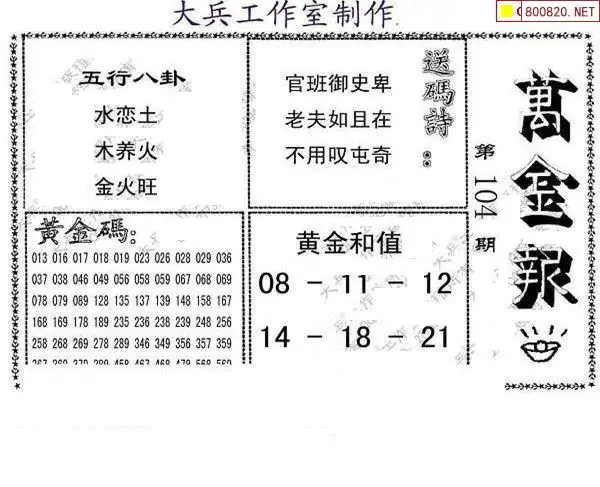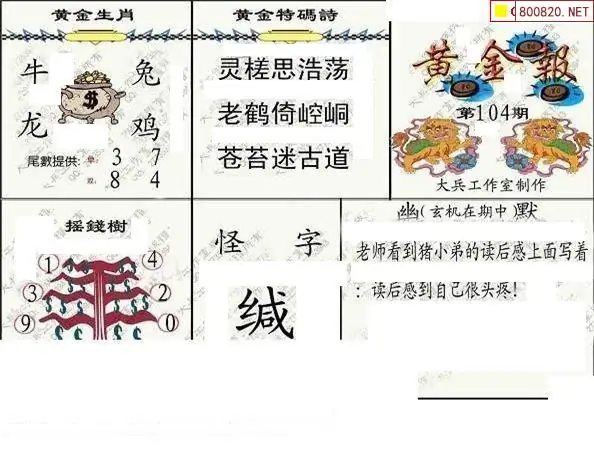 20 钱庄报26104期钱庄快报一句定三码