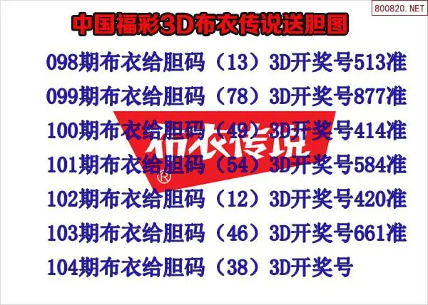 2026104期布衣传说天齐网3d原创双胆图谜