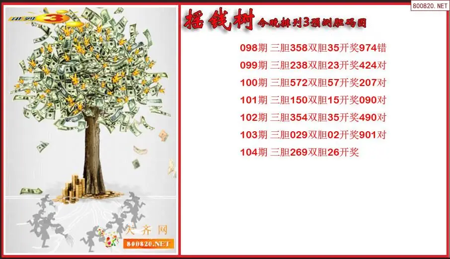 2026年摇钱树104期今晚排列3预测胆码图 (原创)
