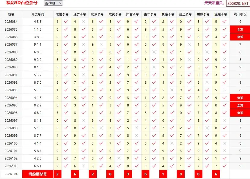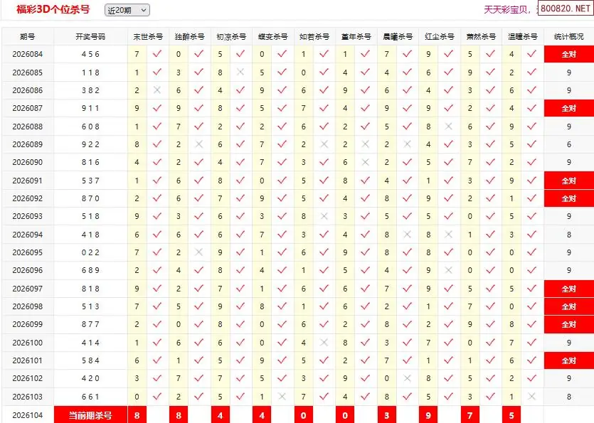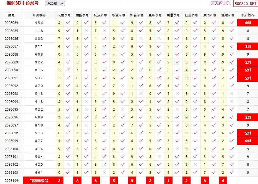 20 26年104期[刚哥]3D杀一码 103错27