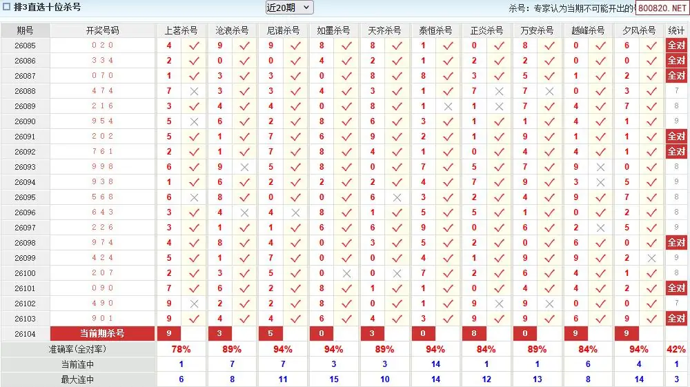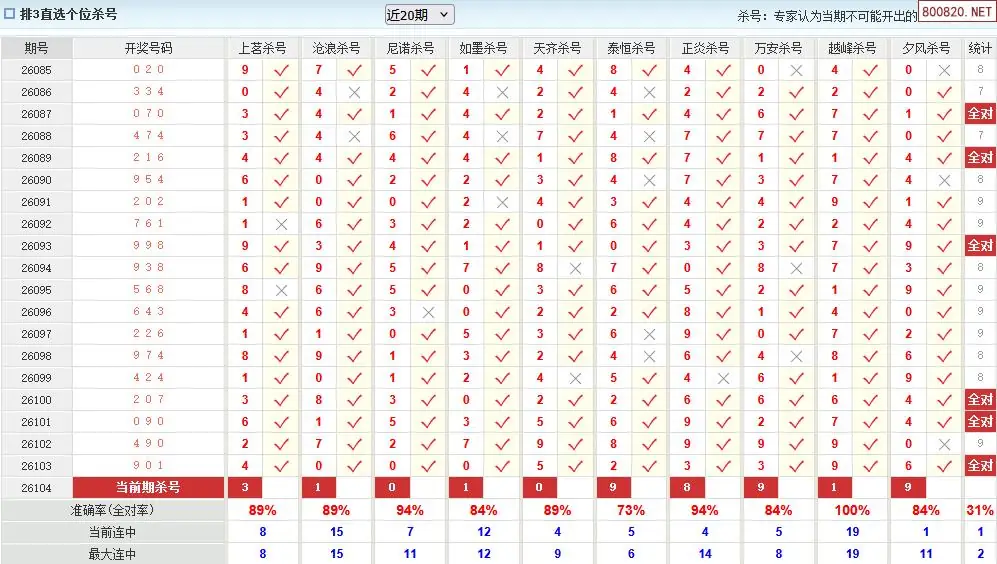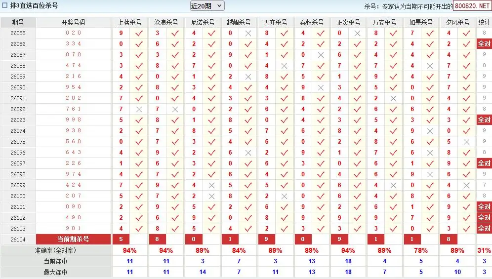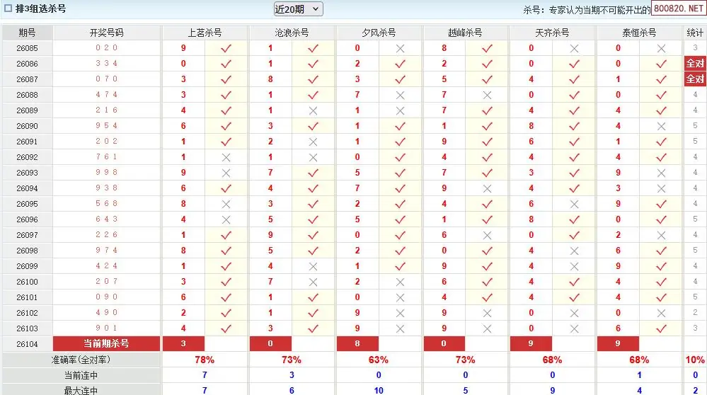 澳客彩票26年体彩P3104期十大大专家杀号