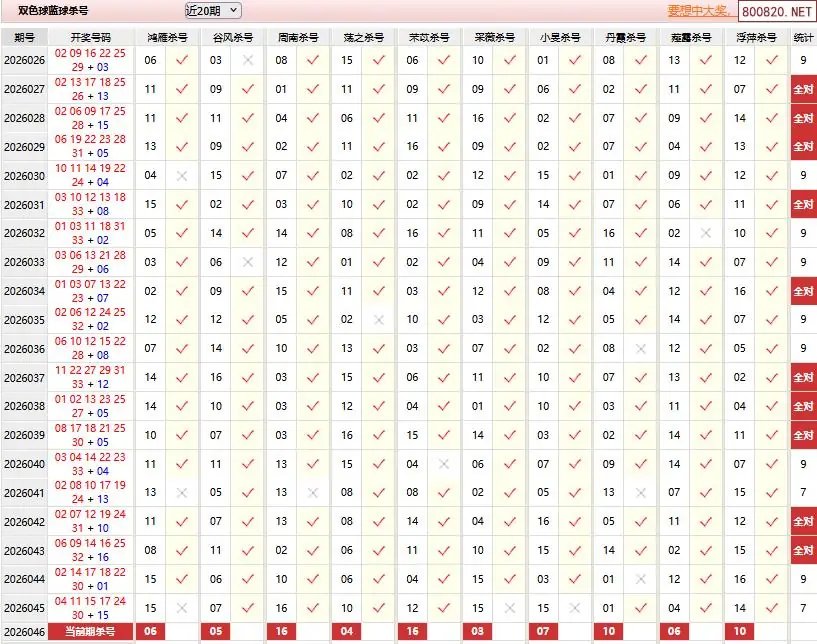 1 2026046期双色球精选杀蓝汇总