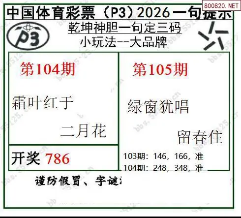 2026105期乾坤一句p3定三码图谜