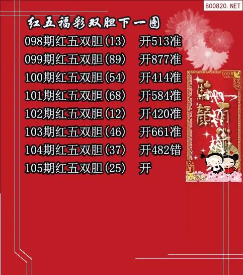 天齐福彩3d2026105期红五双胆