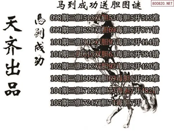 2026年105期马到成功专家3d送胆图谜-天齐网原创