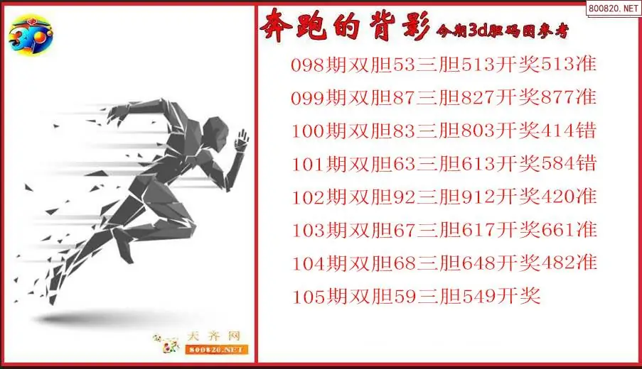 2026105期奔跑的背影今期3d胆码图参考(原创)