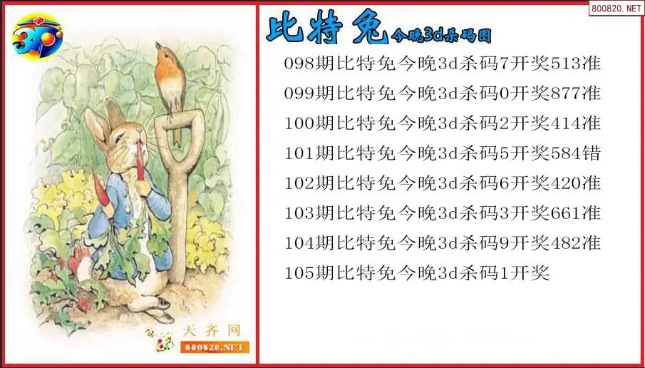比特兔2026105期今晚3d杀码图(原创)
