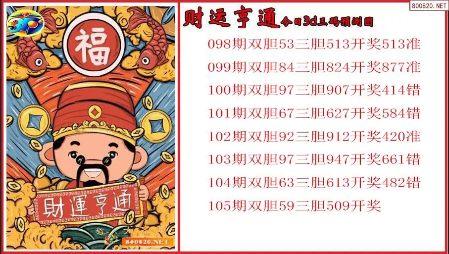 2026年财运亨通105期今日3d三码预测图(原创)
