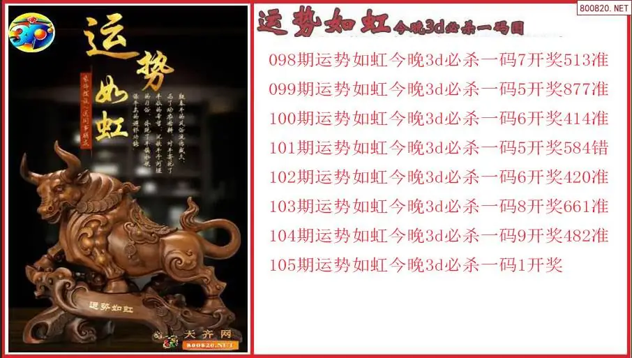 运势如虹2026105期今晚3d必杀一码图(原创)