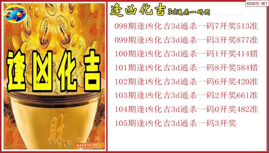 逢凶化吉2026105期3d通杀一码图(原创)