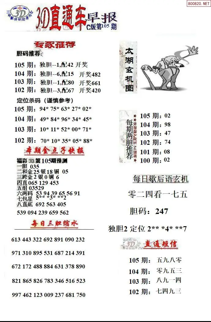 26年105期福彩3D直通车早报ABCD版