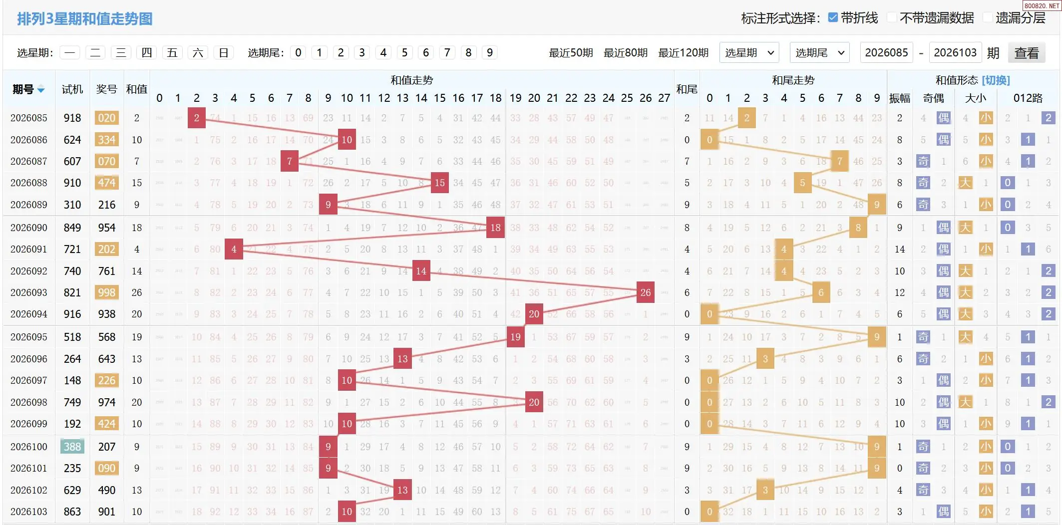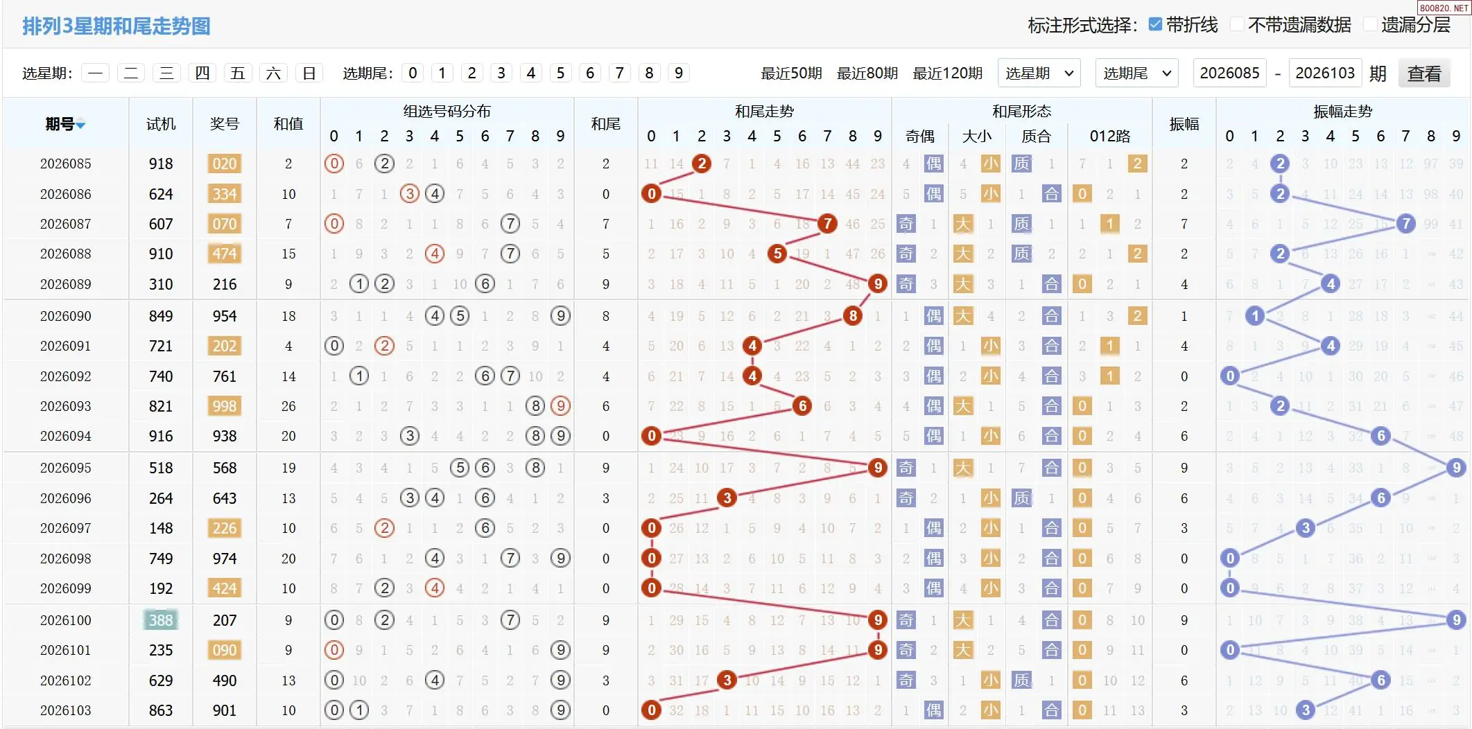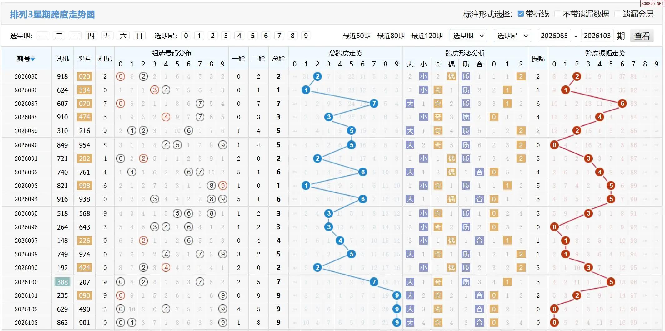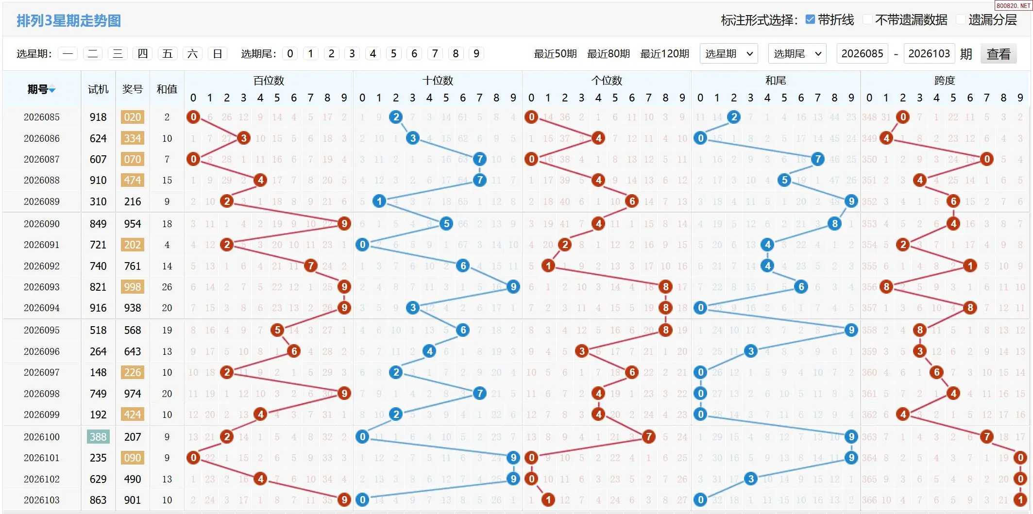 2026105期体彩P3基本走势图如下: