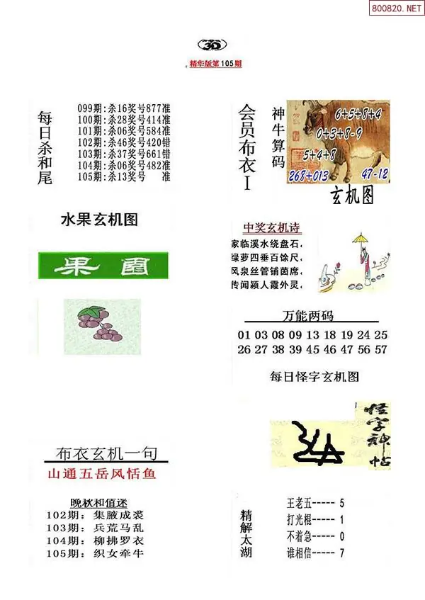 2026年105期精华布衣3D全图