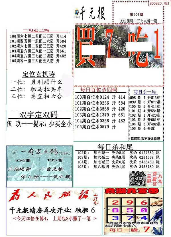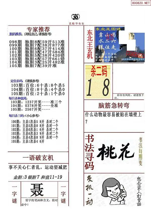26年105期解太湖3d字图迷汇总彩报