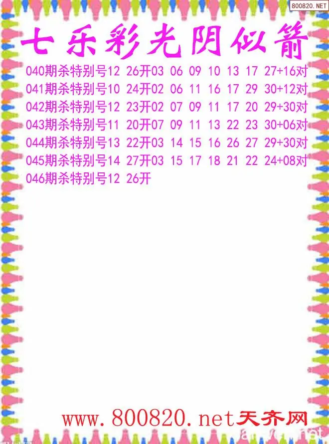 光阴似箭26年046期七乐彩杀号图谜