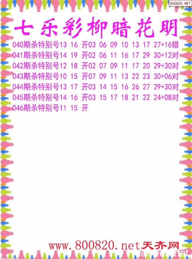 柳暗花明26年046期七乐彩杀号图谜