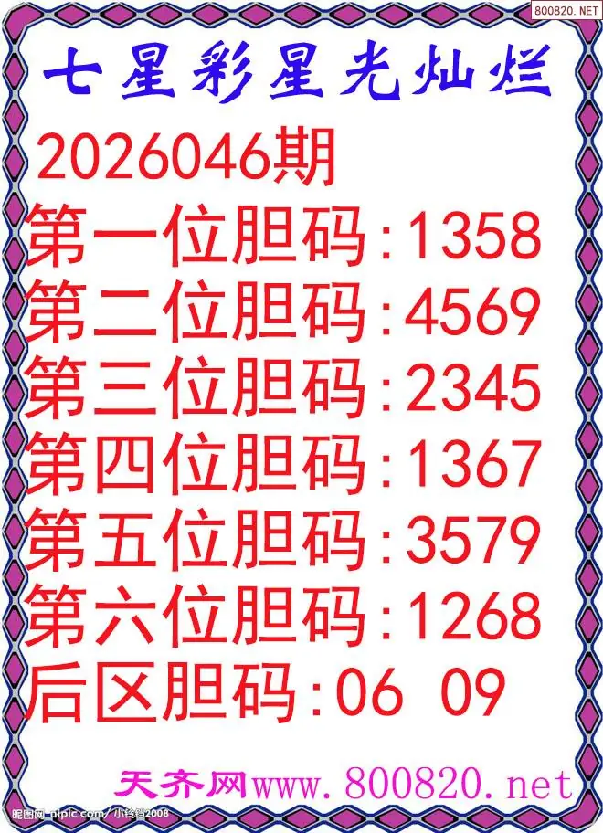 星光灿烂26年046期七星彩杀号图谜