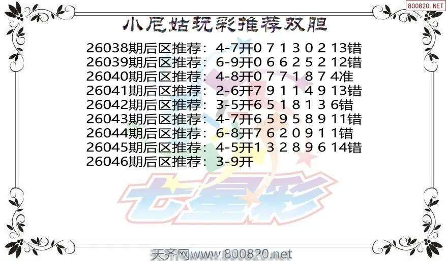 毒霸26年046期七星彩杀号图谜