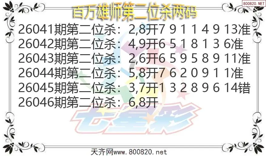 百万雄师26年046期七星彩杀号图谜