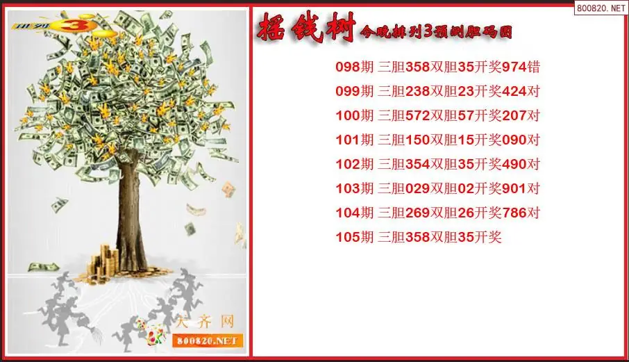 2026年摇钱树105期今晚排列3预测胆码图 (原创)