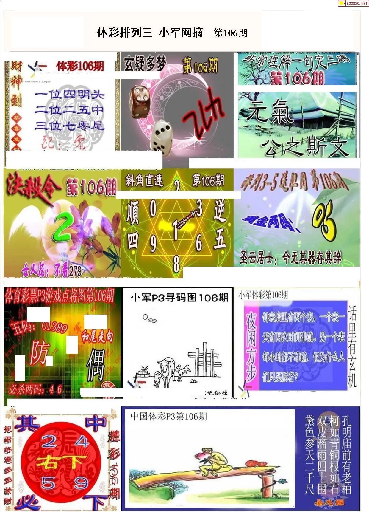 10 26106期彩友P3图迷汇总(天齐整理)